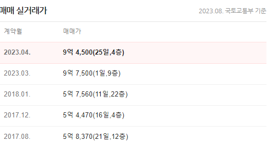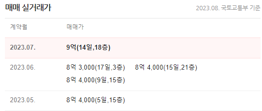 좀 더 역과 가까운 휘경 SK뷰 아파트의 경우, 최근 전용 59 타입 고층(18층)이 9억원에, 전용 84 타입 저층(4층)이 9억 4500만원에 매매된 바 있었습니다.