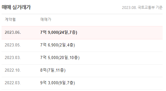 래미안 아트리치는 전용 59 타입이 7억 9000만원에 매매되었으며, 전용 84타입의 경우 9억 4500만원에 매매가 되었네요.