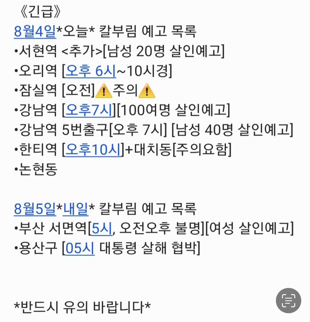 문제는 여기서 그치지 않고, 잠실, 강남 등 많은 지역에서 칼부림 예고가 있었는데요,